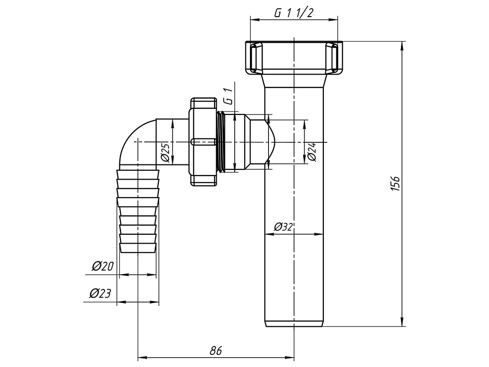 Совместимость с канализационными трубами диаметром 32 мм и сливными шлангами 1 1/2 дюйма.