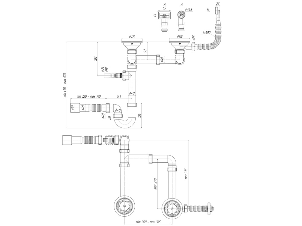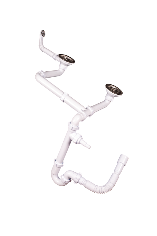 Двойная конструкция идеально подходит для моек с двумя чашами, обеспечивая эффективный отвод воды из каждой секции.