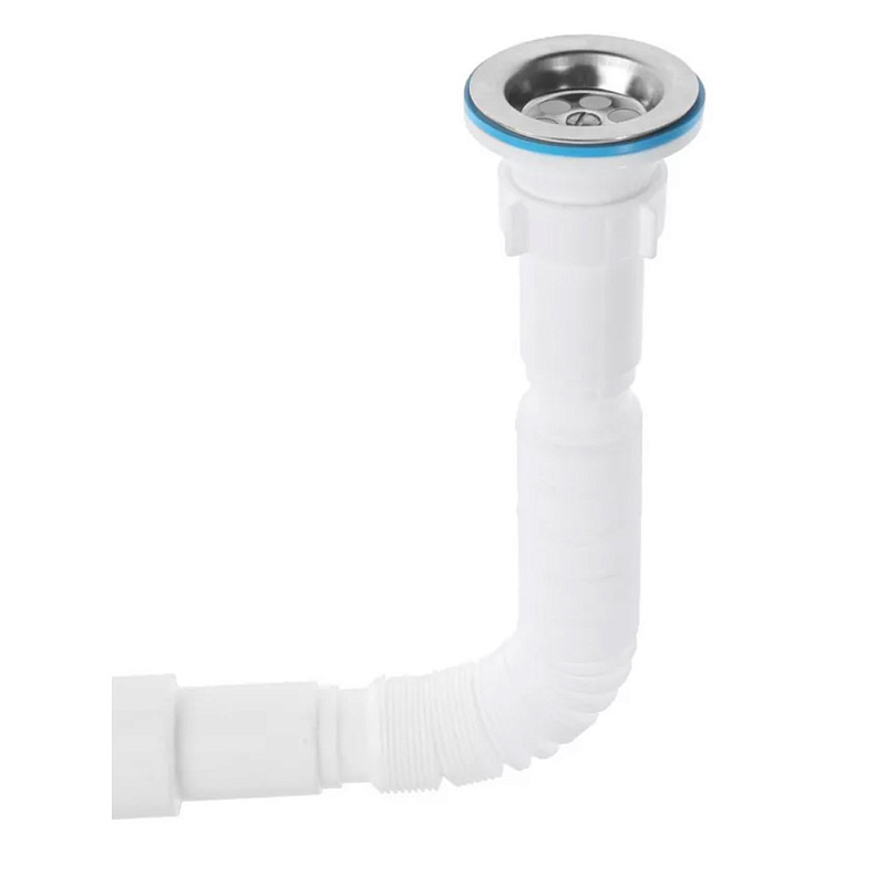 Размеры изделия составляют 1 1/2 х 40/50 мм, сифон оснащен сеткой из нержавеющей стали, идеально подходит для эксплуатации на кухнях — там, где особенно важна защита от загрязнений и предотвращения засорений. Длина трубы регулируется от 396 до 706 мм, обеспечивая универсальность при подключении к разным видам канализаций.
