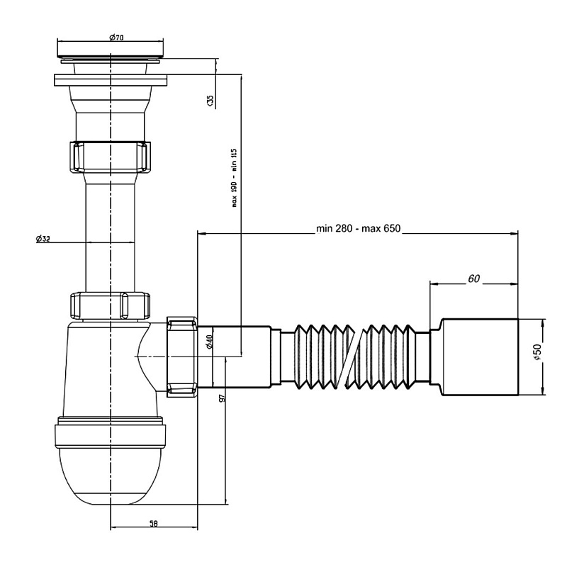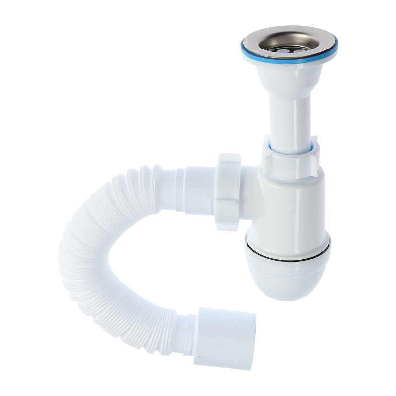 Универсальная конструкция — подходит для большинства моек с отверстием 1 1/4" и выпуском 40 мм.