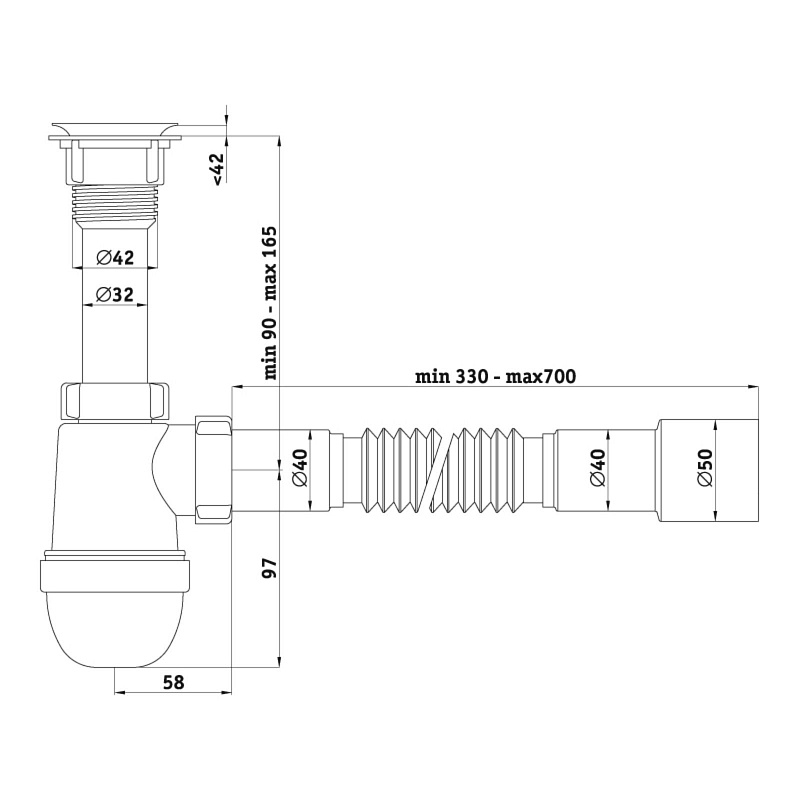 Сифон для мойки АНИ Пласт Варяг C5015 1 1/4 дюйма 40 мм с гибкой трубой 40х40/50 мм