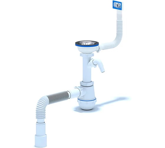 Сифон для мойки АНИ Пласт Грот A1045SA15 3 1/2 дюйма 40 мм с гибким переливом и гибкой трубой