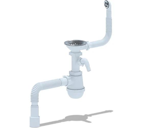 Сифон для мойки АНИ Пласт Грот A1042SP15 3 1/2 дюйма 40 мм с гибким переливом и отводом для стиральной машины