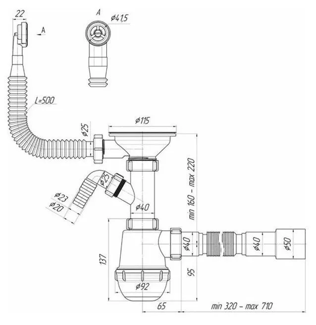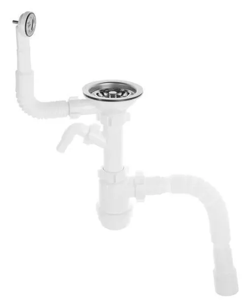 Сифон для мойки АНИ Пласт Грот A1042SA15 3 1/2 дюйма 40 мм с гибким переливом и отводом для стиральной машины