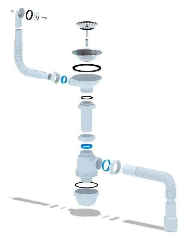 Гибкий перелив предотвращает перелив воды и легко регулируется по длине.