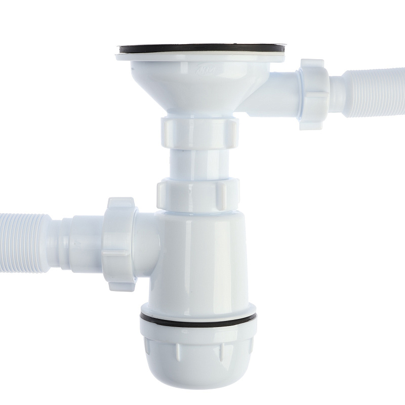 Сифон для мойки АНИ Пласт Грот A0142SA15 3 1/2 дюйма 40 мм с гибким переливом и гибкой трубой 40х40/50 мм