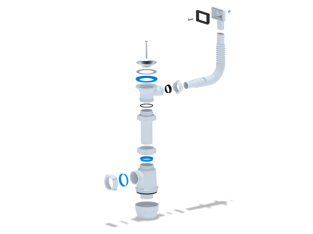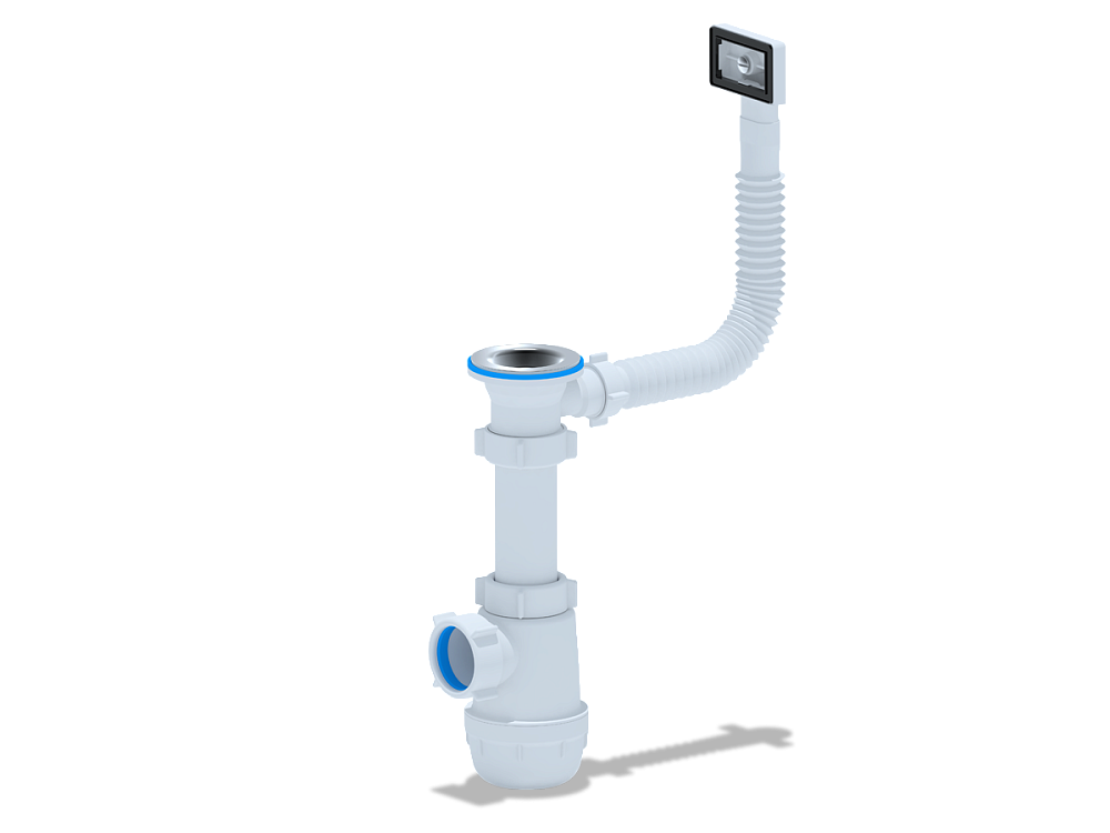 Гибкий перелив позволяет легко подстроиться под конструкцию мойки и обеспечивает надёжную защиту от переполнения.