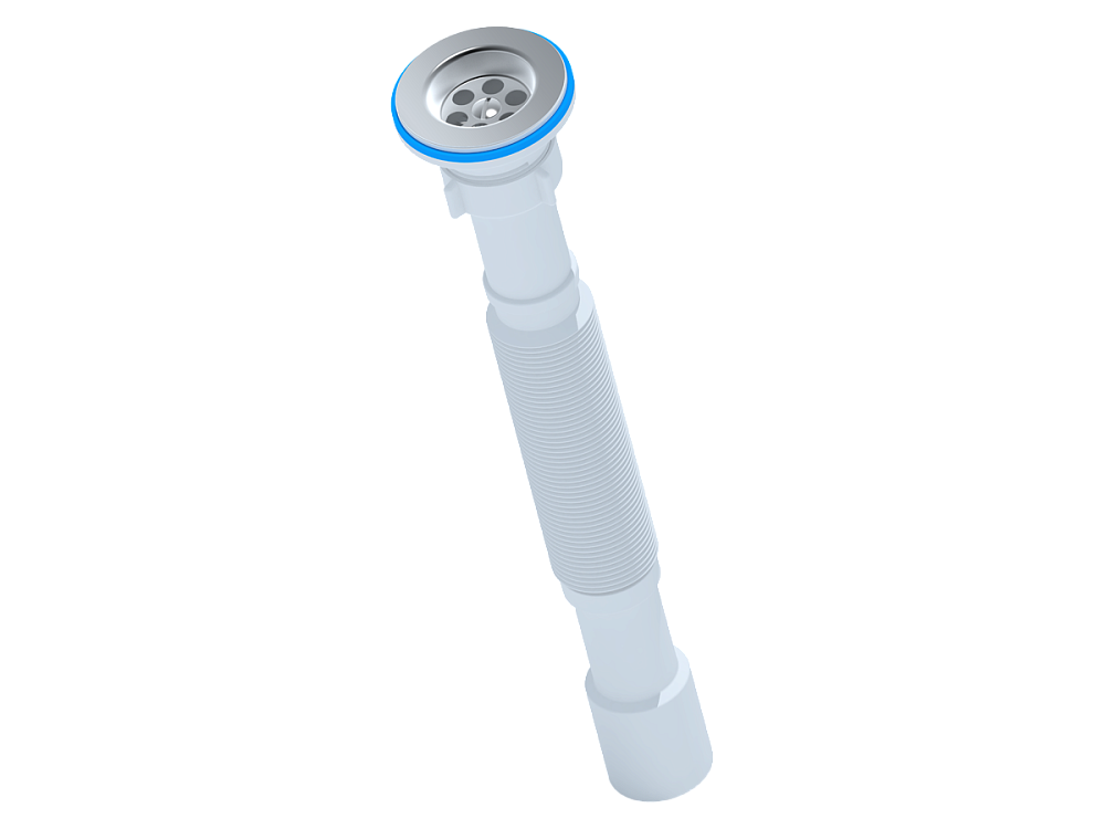 Гофрированная конструкция позволяет регулировать длину сифона от 391 до 801 мм, обеспечивая гибкость при установке.