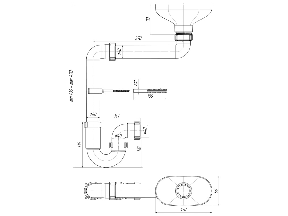 Сифон АНИ Пласт DR5000 1 1/2 дюйма 40 мм смещенный с разрывом струи