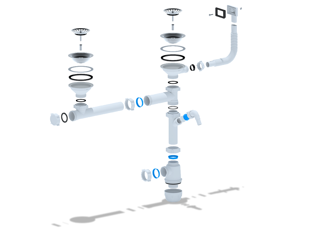 Качественный пластик устойчив к воздействию бытовой химии и перепадам температур, что гарантирует долгий срок службы сифона.