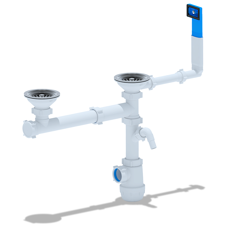 Двойной слив обеспечивает одновременное подключение двух чаш, что особенно удобно для кухонь с большой мойкой.