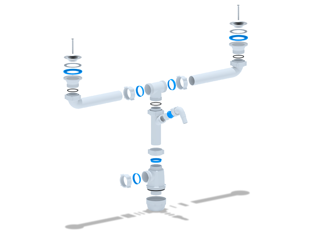 Двойная конструкция позволяет подключить две чаши мойки, обеспечивая быстрый и эффективный слив воды с обеих сторон.