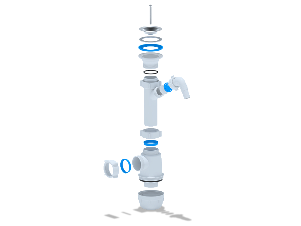Дополнительный отвод обеспечивает удобное и герметичное подключение стиральной или посудомоечной машины.