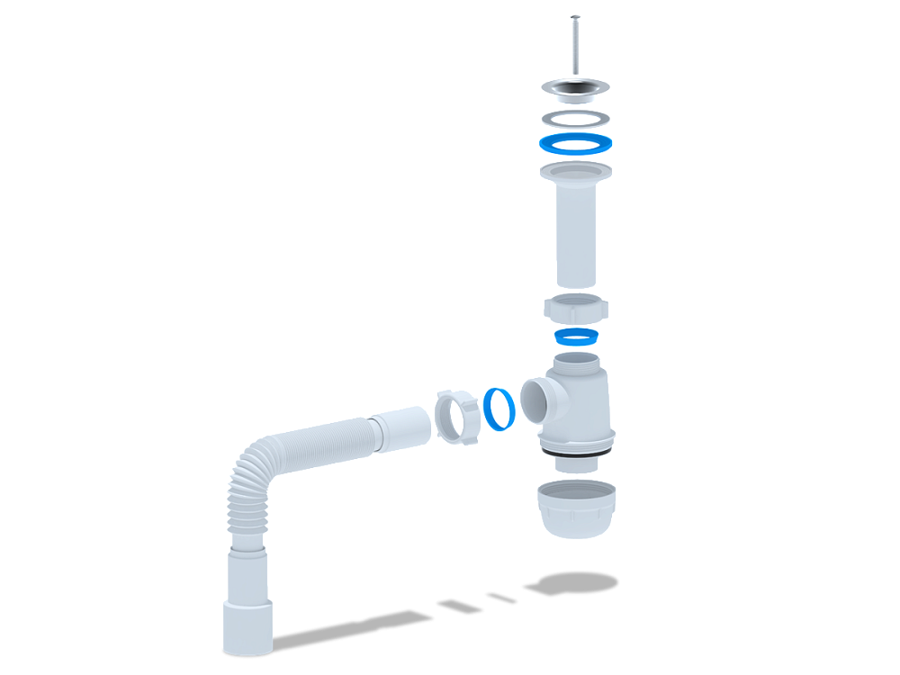 Гибкая труба позволяет легко адаптировать сифон под особенности монтажа и обеспечивает надёжное соединение.