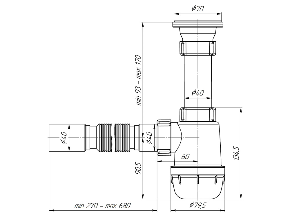 Сифон для мойки АНИ Пласт Грот A0105 1 1/2 дюйма 40 мм c гибкой трубой 40х40 мм
