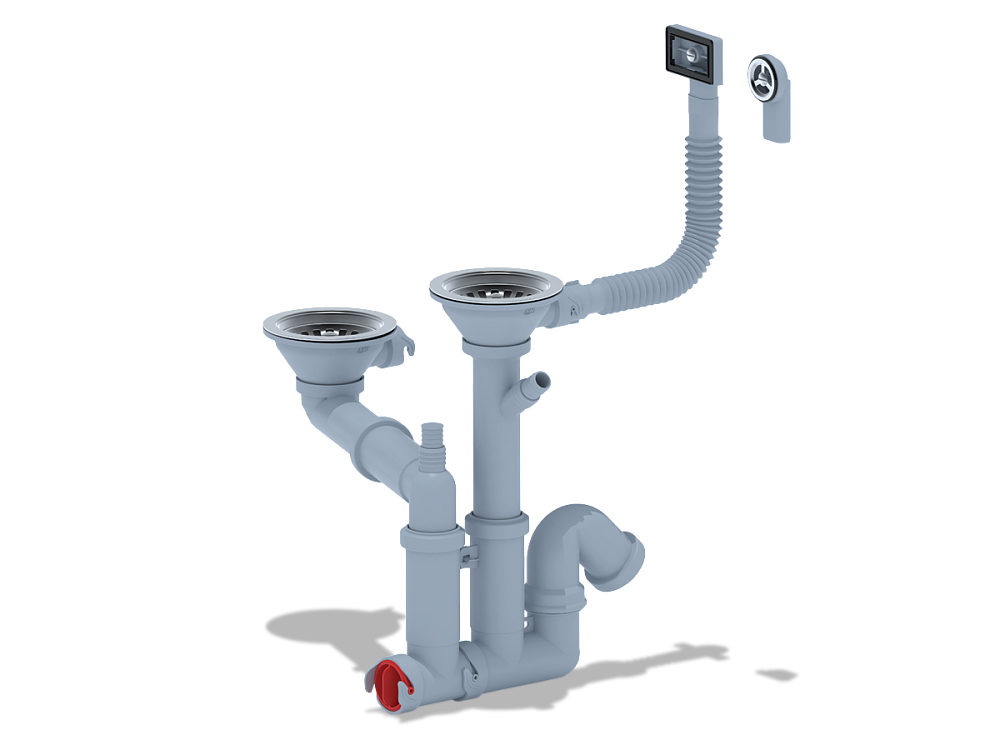 Двойная смещённая конструкция для эффективного слива с обеих чаш и экономии пространства.