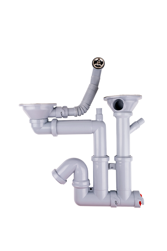 Cифон для мойки АНИ Пласт F серия F7500S 3 1/2 дюйма 40 мм двойной смещенный с гибким переливом и отводом для стиральной машины