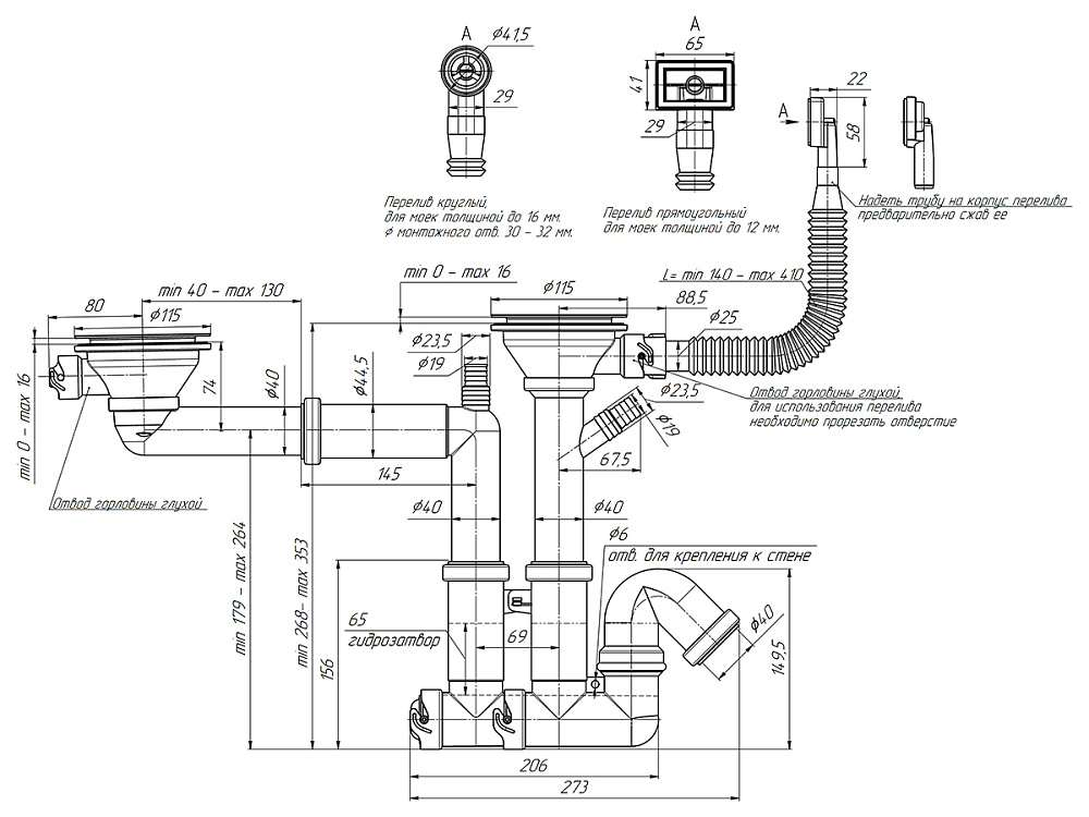 Преимущества сифона для мойки АНИ Пласт F серия F7500S: