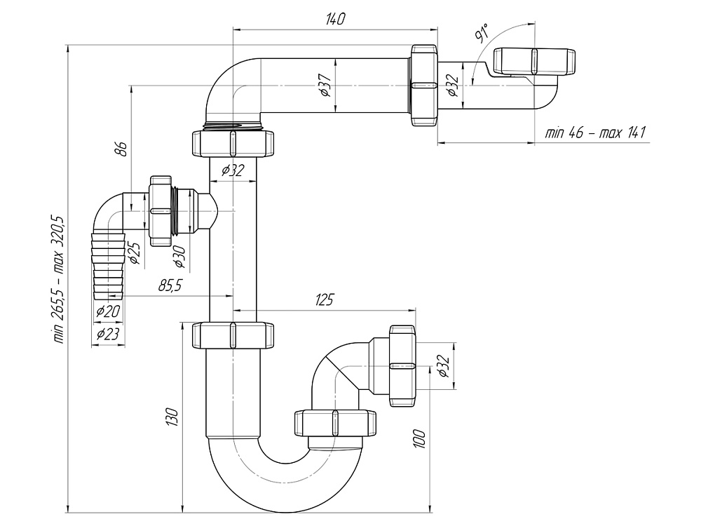 Компактная конструкция позволяет установить сифон даже в условиях ограниченного пространства под раковиной.