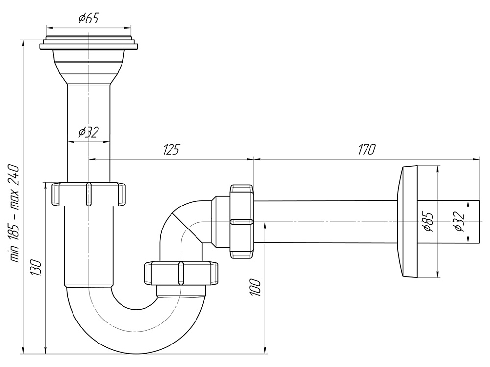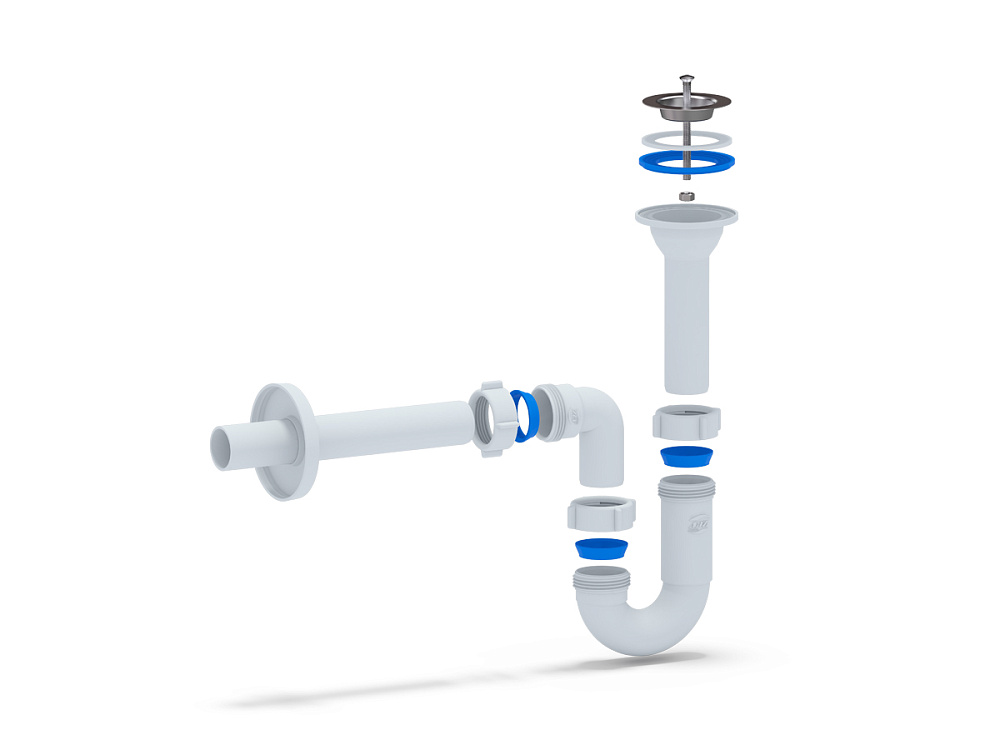 Стандартные размеры делают сифон совместимым с большинством кухонных моек. -
