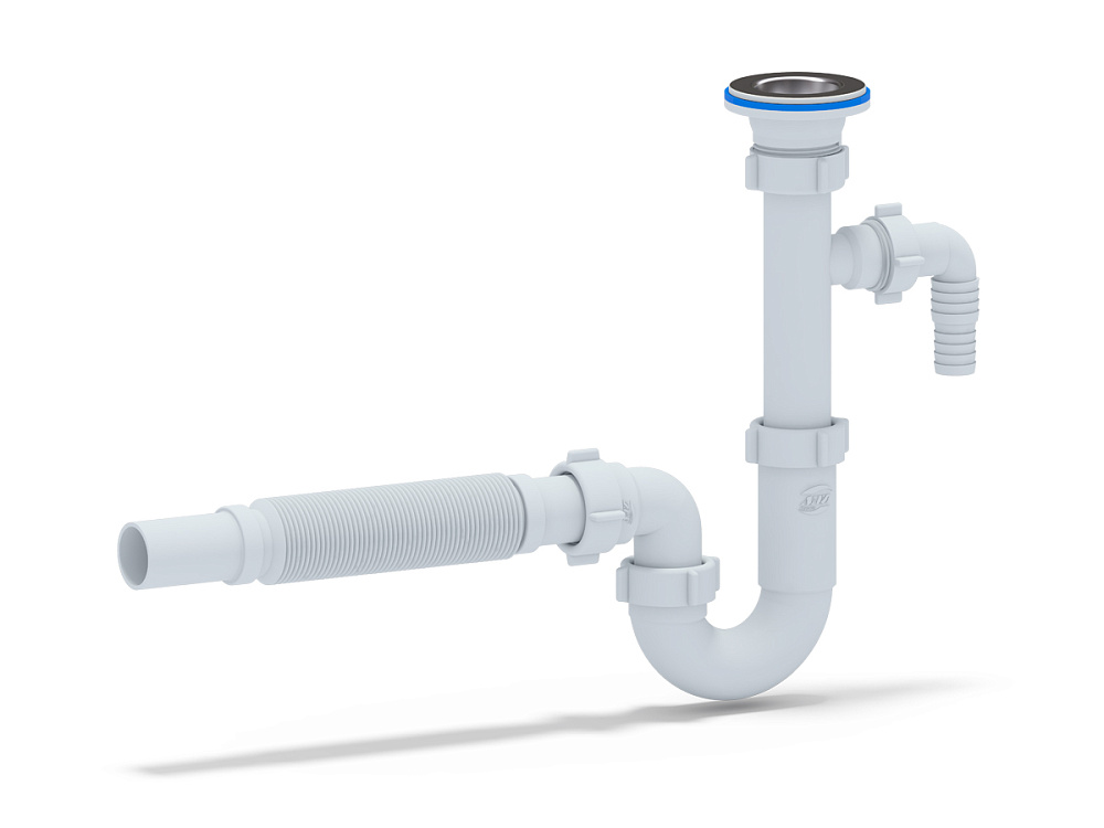 Сифон для раковины АНИ Пласт DB1305 с отводом для стиральной машины и гибкой трубой 32х32 мм