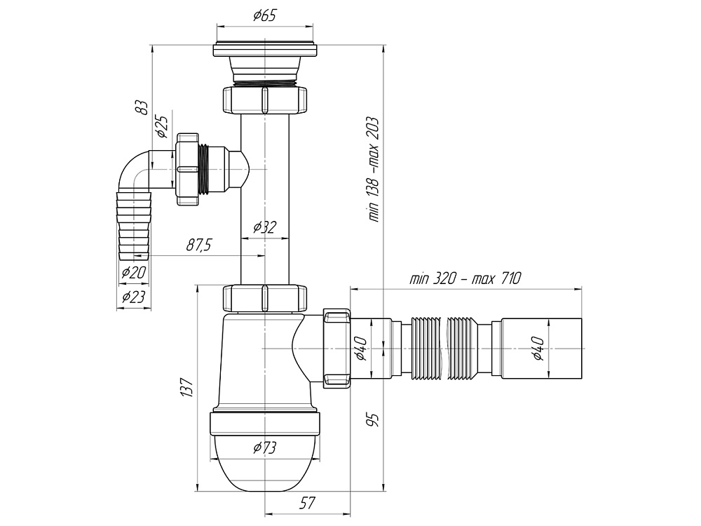 Сифон подходит для большинства стандартных раковин, что облегчает выбор и установку. -