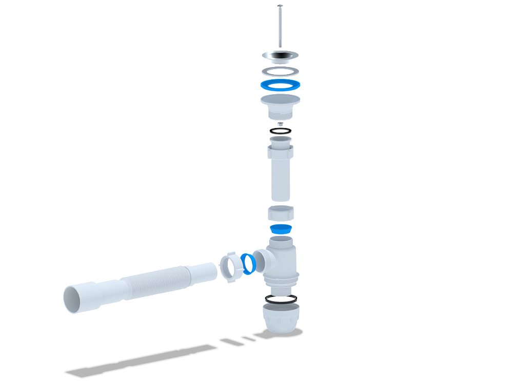Компактная конструкция позволяет устанавливать сифон даже в условиях ограниченного пространства под раковиной, что особенно актуально для небольших ванных комнат и кухонь.