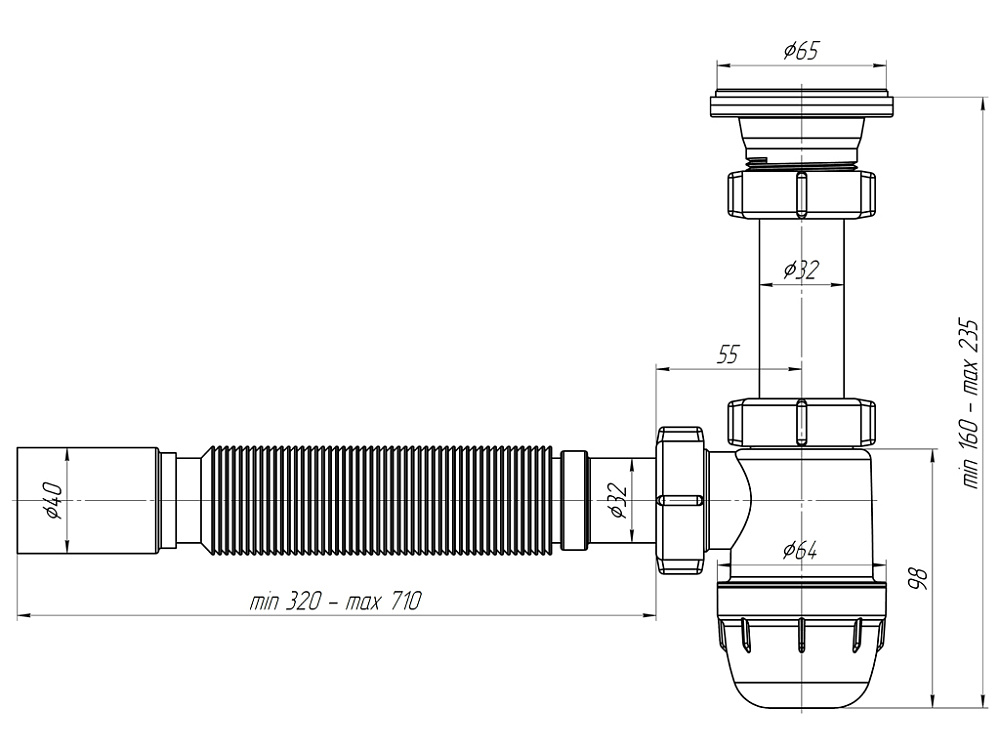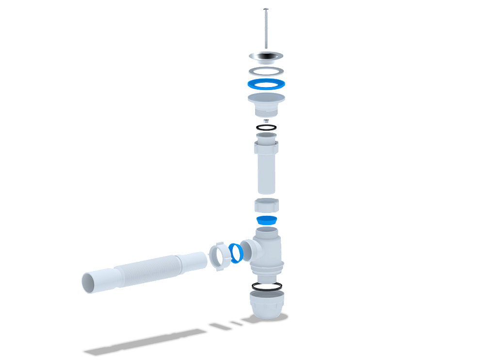 Компактная конструкция позволяет устанавливать сифон даже в условиях ограниченного пространства под раковиной, что особенно актуально для небольших ванных комнат и кухонь.