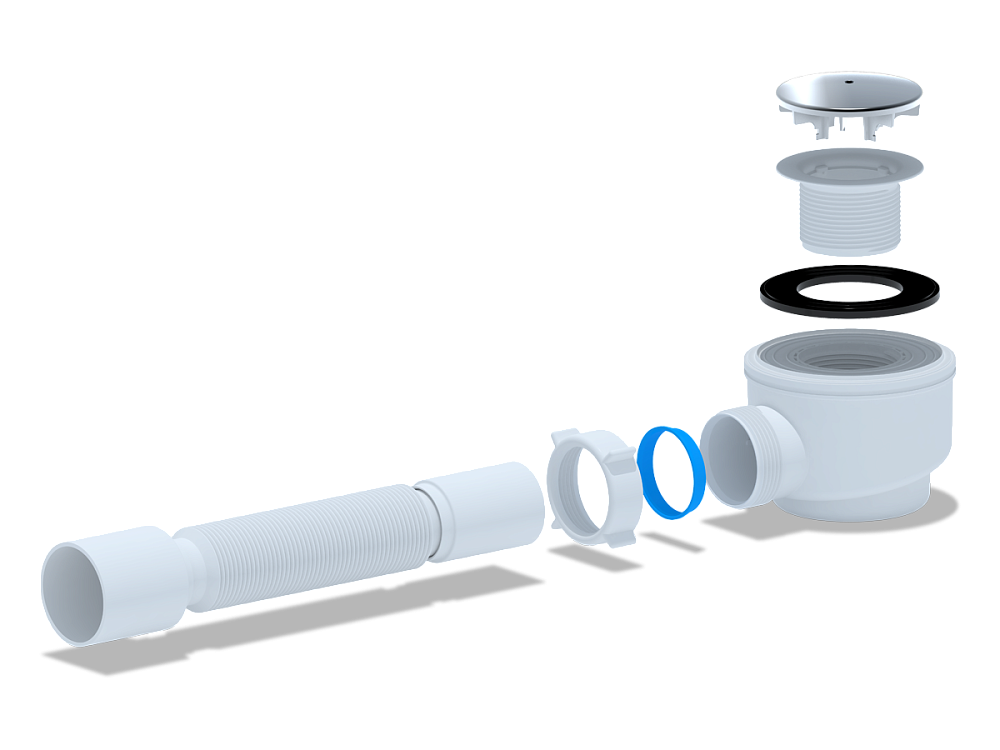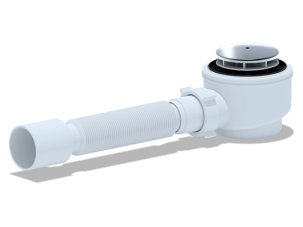 Компактная конструкция позволяет установить сифон даже в условиях ограниченного пространства под душевым поддоном, что особенно актуально для небольших ванных комнат и душевых кабин. -