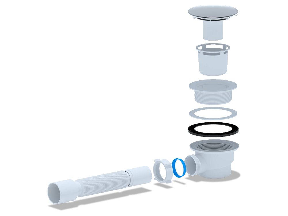 Сверхнизкая высота (53 мм) позволяет устанавливать сифон в душевых поддонах с ограниченным пространством под ними, что делает его идеальным для современных душевых кабин с низким поддоном.