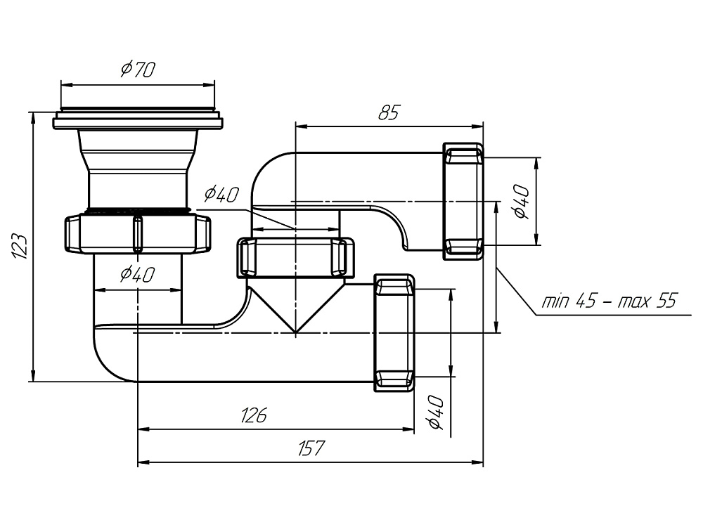 Регулируемая конструкция позволяет настроить высоту сифона для оптимальной работы и удобства монтажа.