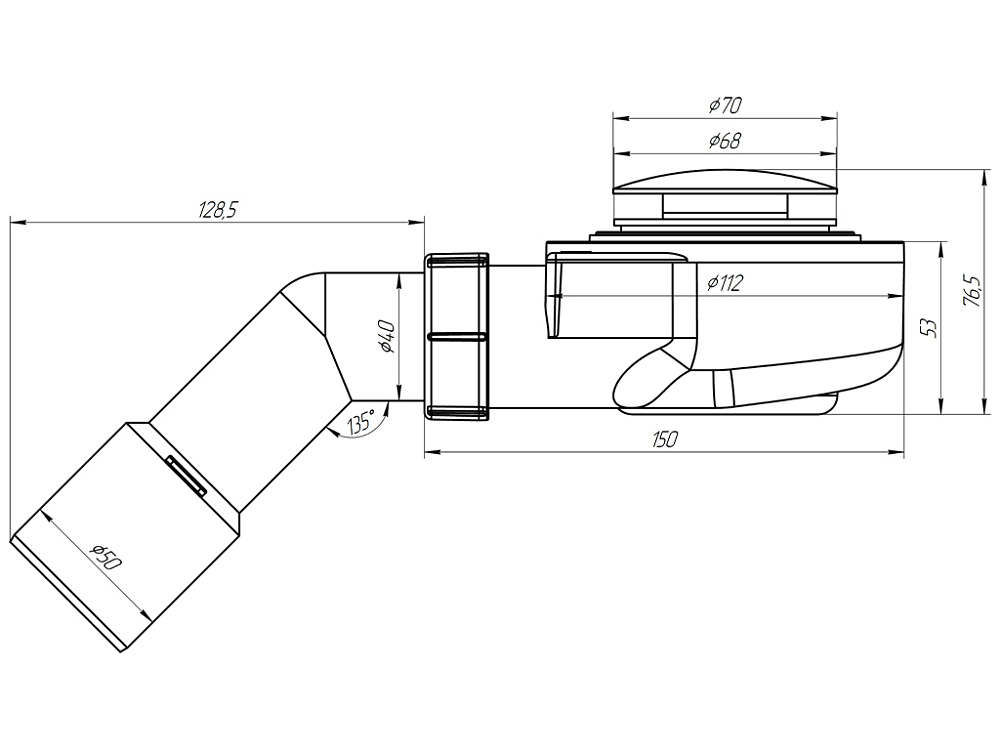 Компактная конструкция позволяет установить сифон даже в условиях ограниченного пространства под душевым поддоном. -