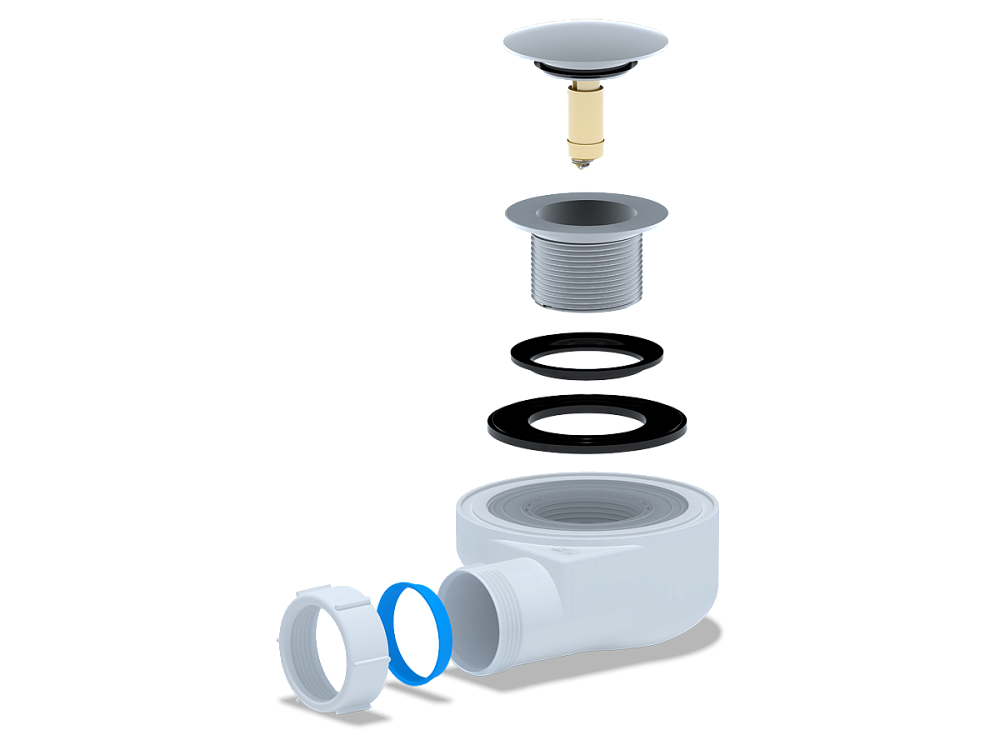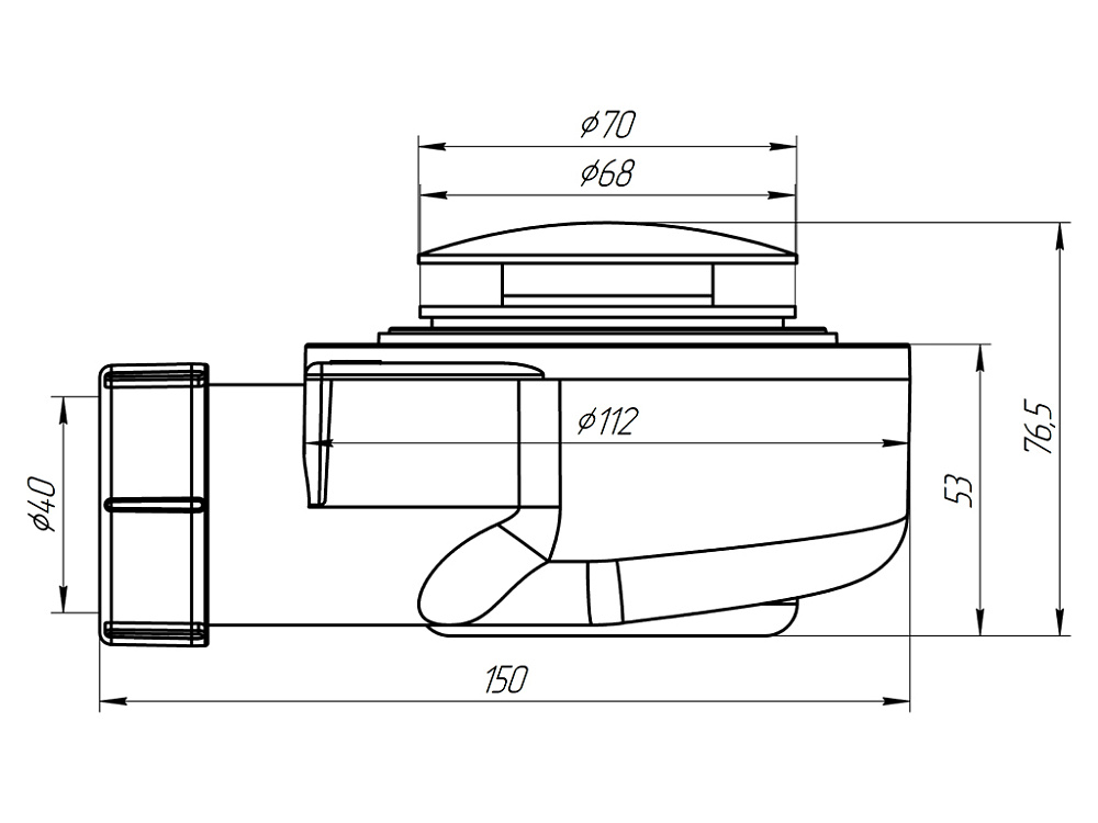 Сверхнизкая высота (53 мм) позволяет устанавливать сифон в душевых поддонах с ограниченным пространством под ними, что делает его идеальным для современных душевых кабин.