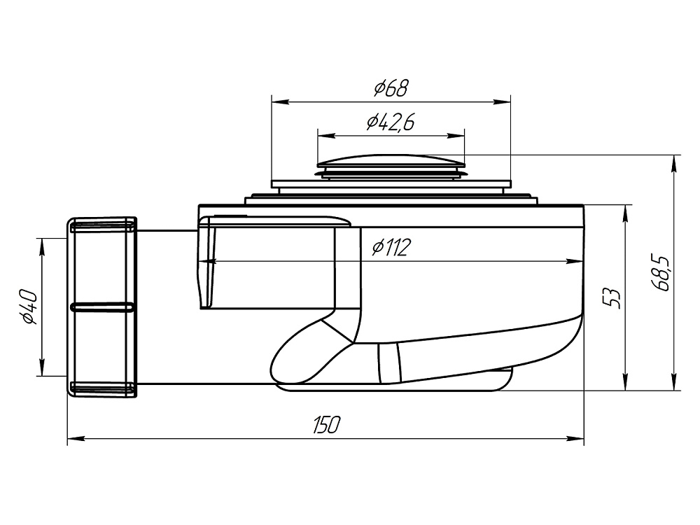 Сверхнизкая высота (53 мм) позволяет устанавливать сифон в душевых поддонах с ограниченным пространством под ними, что делает его идеальным для современных душевых кабин с низким поддоном.