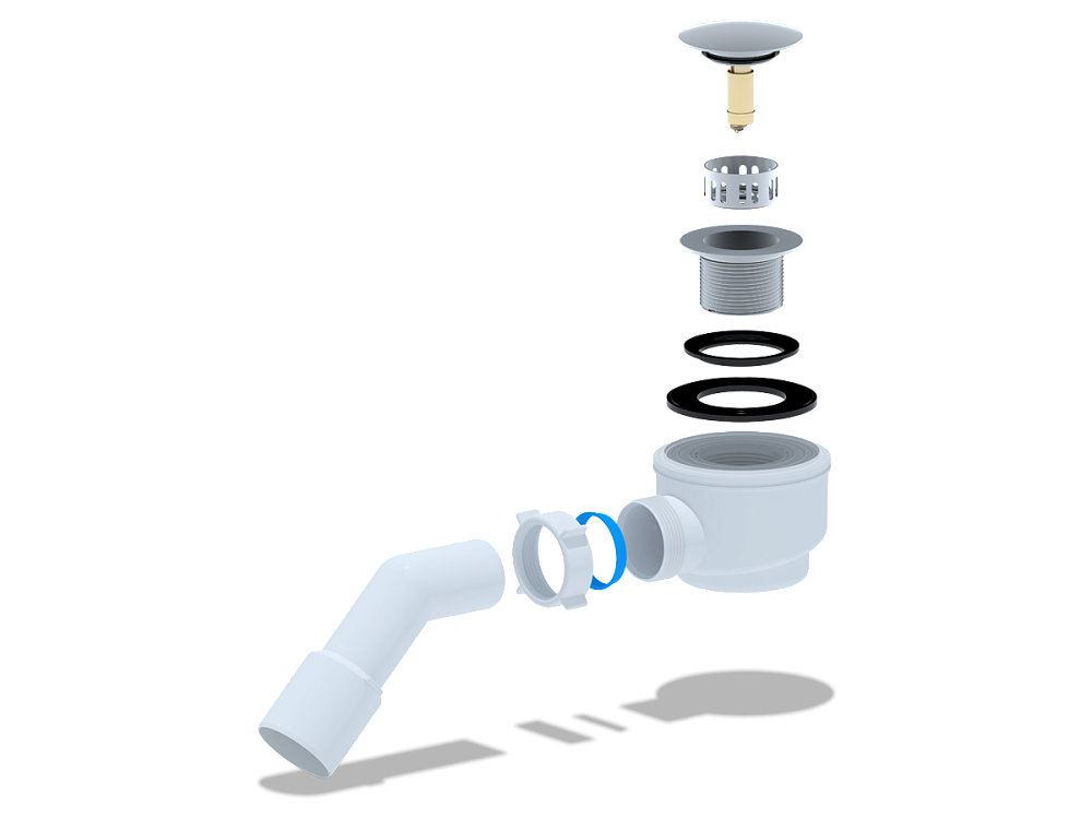 Компактная конструкция позволяет установить сифон даже в условиях ограниченного пространства под душевым поддоном, что особенно актуально для небольших ванных комнат и душевых кабин. -