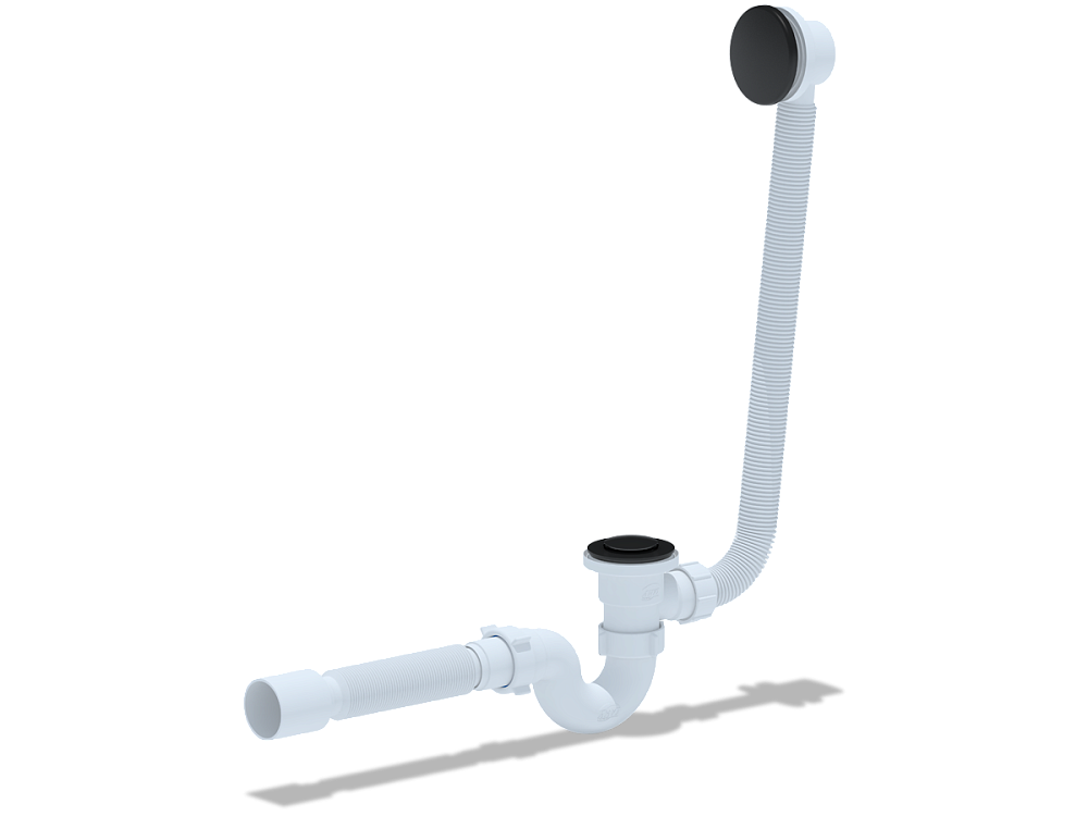 Сифон для ванны АНИ Пласт EC155BL с выпуском клик-клак 1 1/2 дюйма с переливом и гибкой трубой 40х50 мм черный
