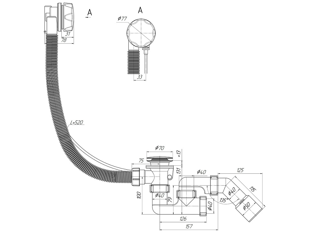 Регулируемый сифон позволяет настроить высоту сифона для оптимальной работы и удобства монтажа.