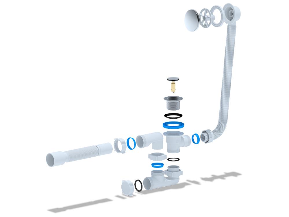 Герметичные соединения предотвращают протечки и появление неприятных запахов, поддерживая чистоту и комфорт в ванной комнате, создавая приятную атмосферу. -