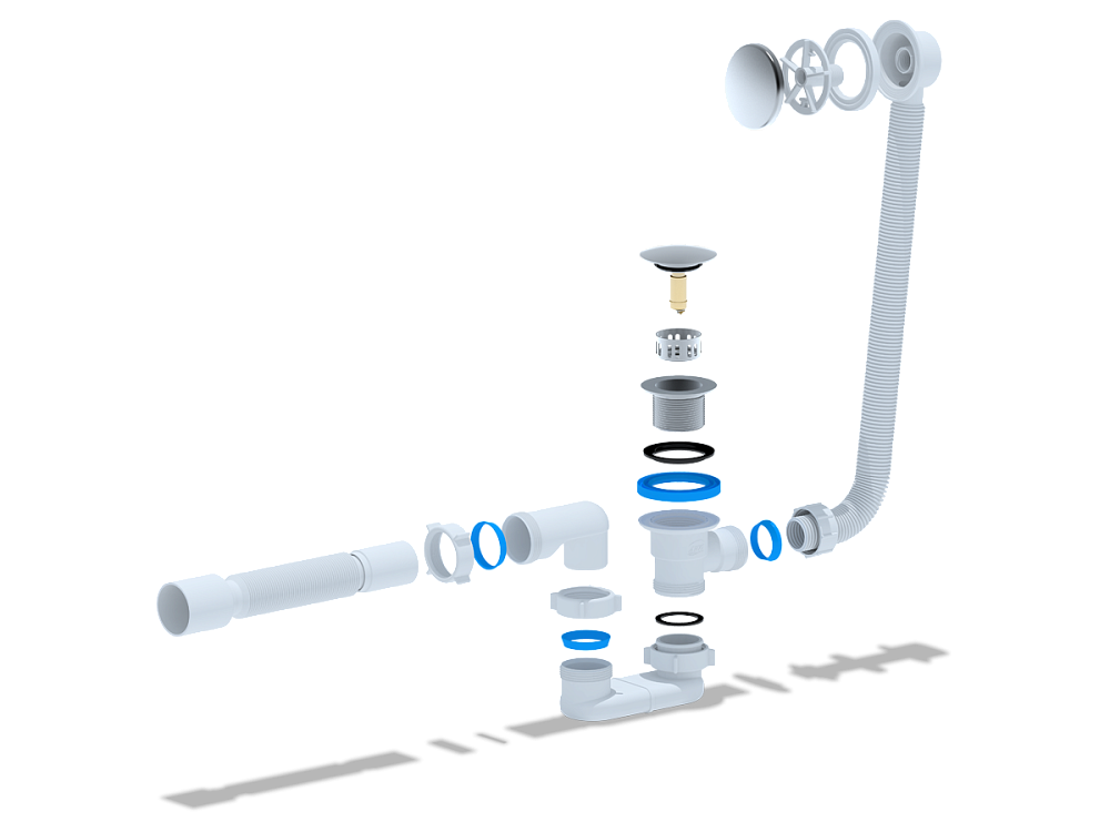 Герметичные соединения предотвращают протечки и появление неприятных запахов, поддерживая чистоту и комфорт в ванной комнате. -