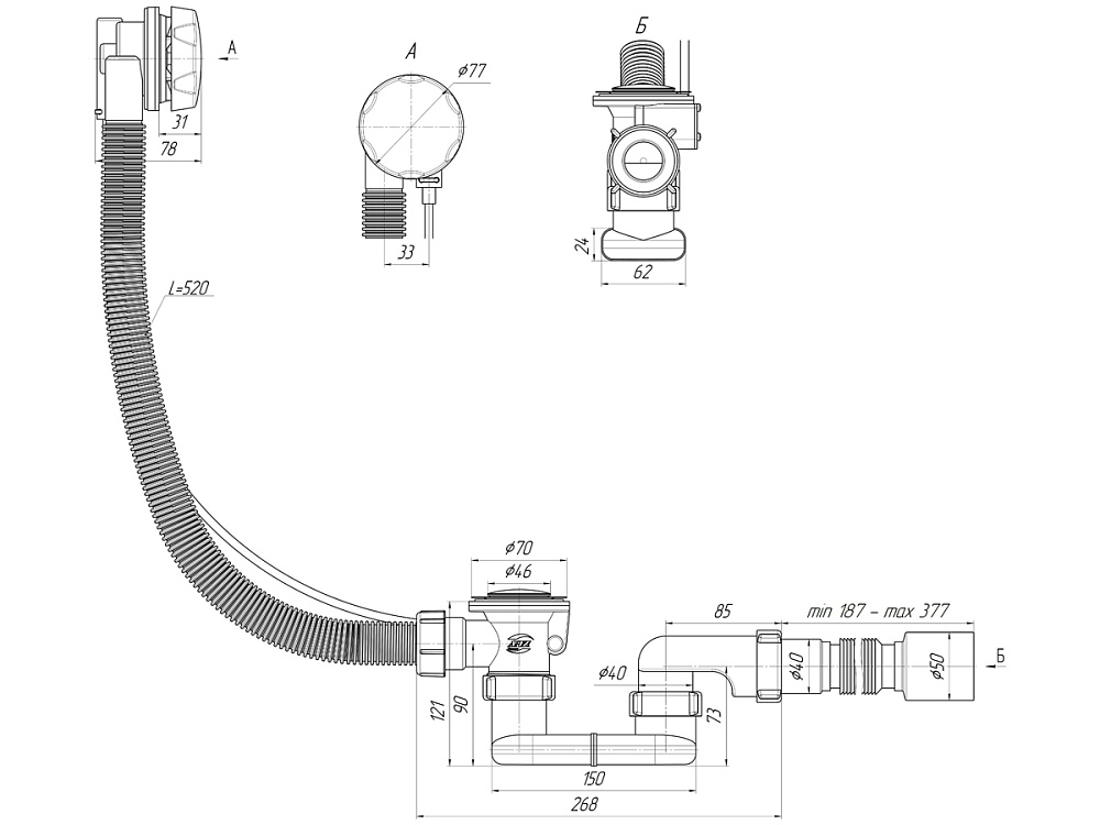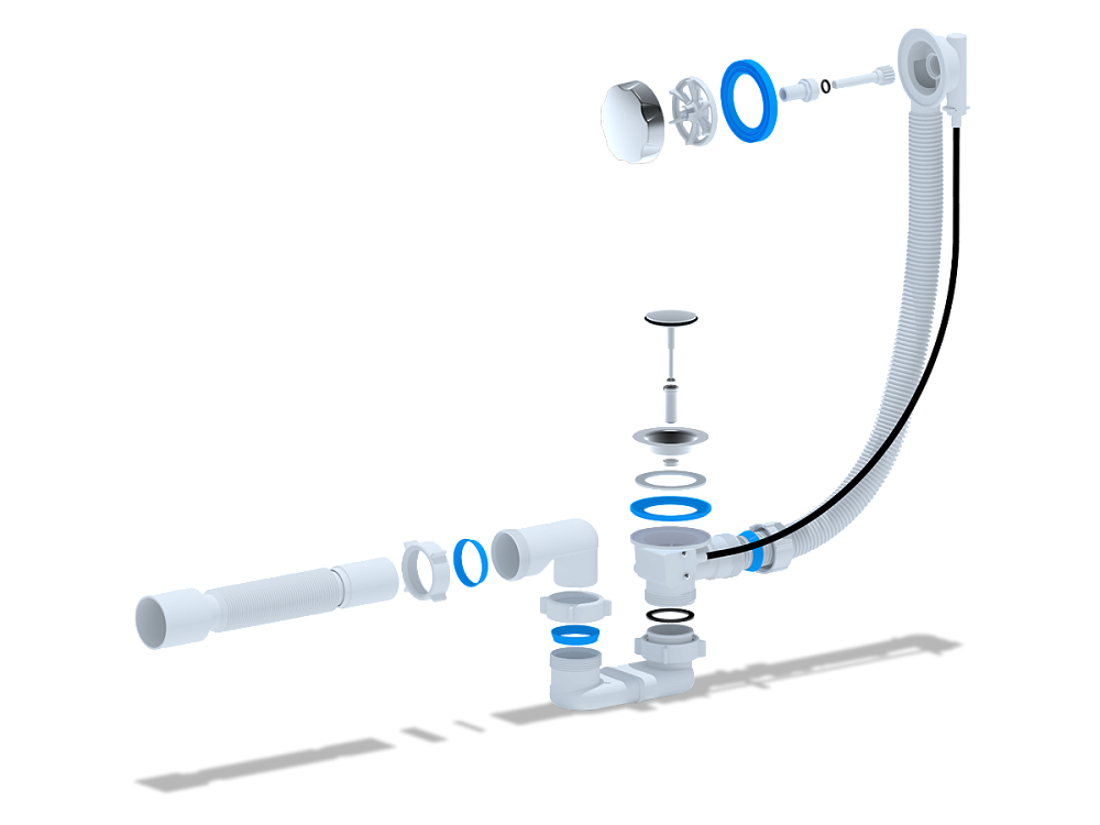 Плоский сифон позволяет сэкономить пространство под ванной, что особенно актуально в небольших ванных комнатах.