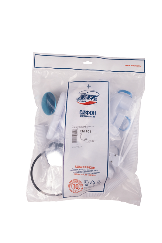 Перелив полуавтомат с плоским сифоном АНИ Пласт EM701 580 мм с гибкой трубой 40х50 мм