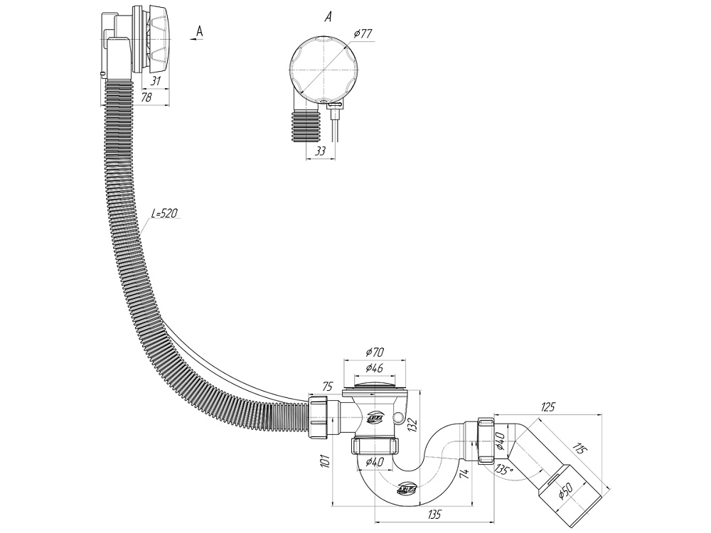 Прямоточный сифон обеспечивает быстрый и эффективный отвод воды, предотвращая засоры.
