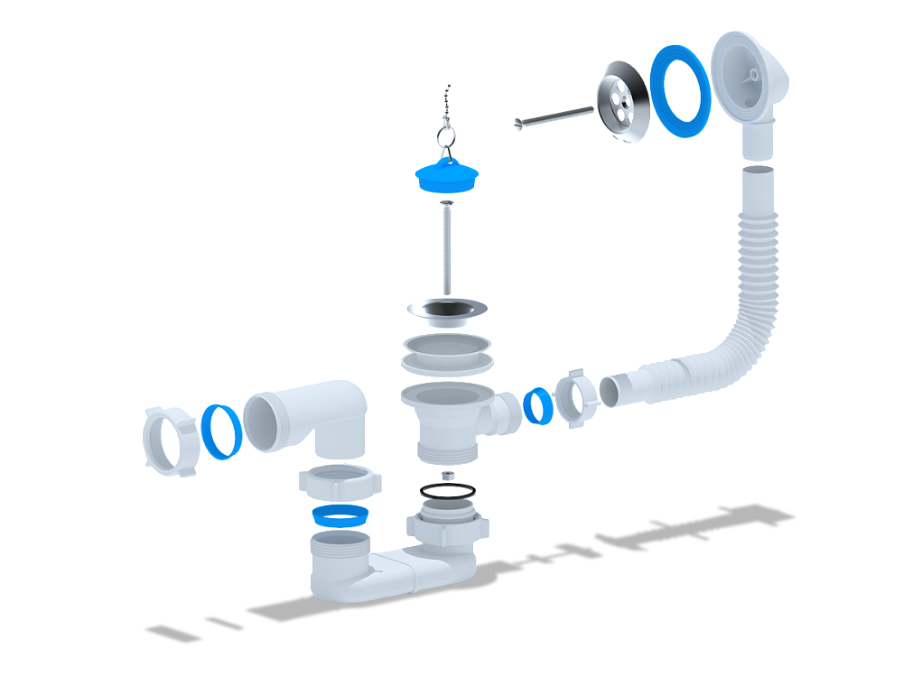 Герметичные соединения предотвращают протечки и появление неприятных запахов, поддерживая чистоту и комфорт в ванной комнате. -