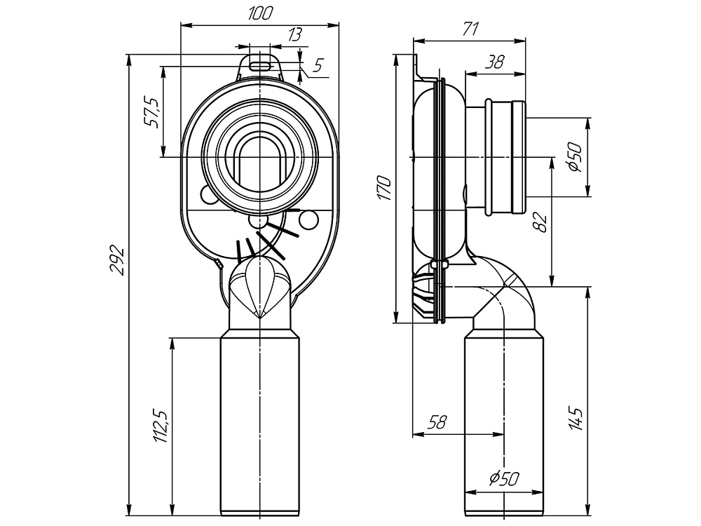 Вертикальный выход 50 мм соответствует стандартным требованиям к канализационным системам.