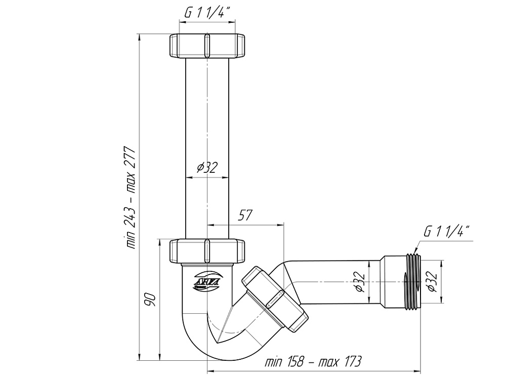 Сифон для биде АНИ Пласт BD1020 1 1/4 дюйма 32 мм без выпуска