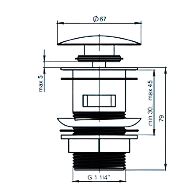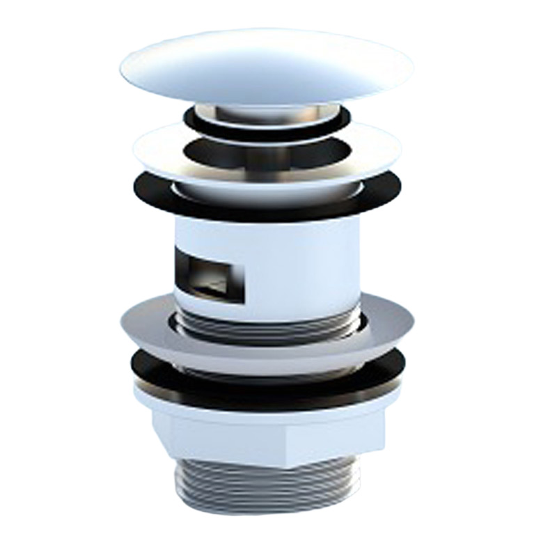 ОписаниеДонный клапан Клик-Кляк M0300CL большая крышка к сифону 1 1/4" для умывальника, подходит для различных раковин, в том числе с переливом.