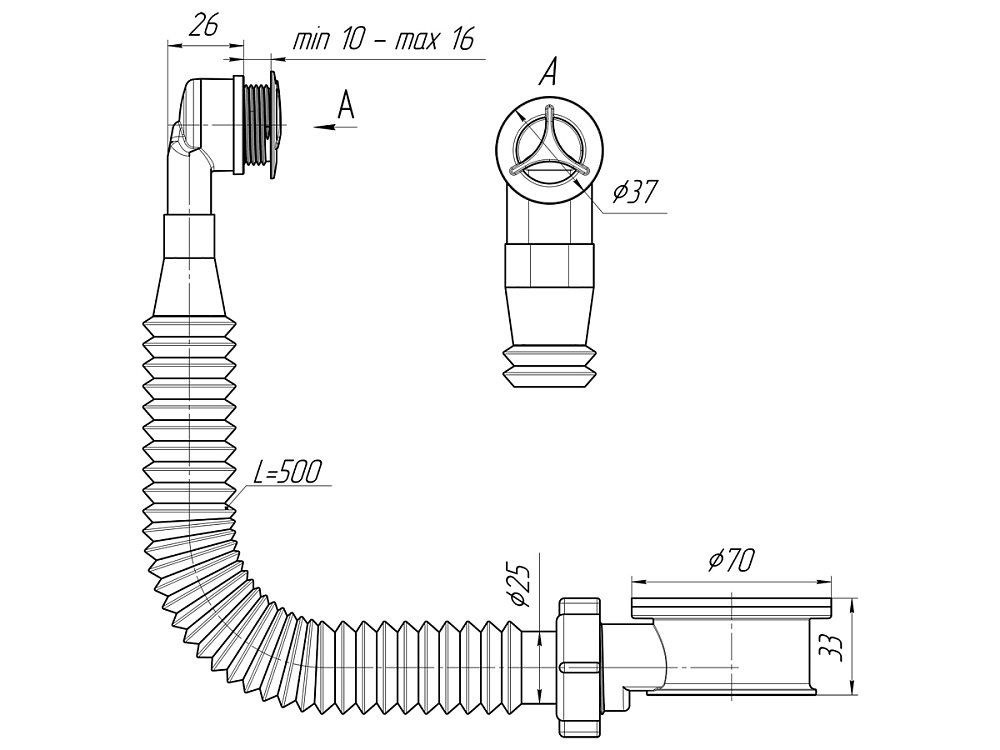 Увеличенная длина резьбы 27 мм обеспечивает более надежное и герметичное соединение с сифоном.