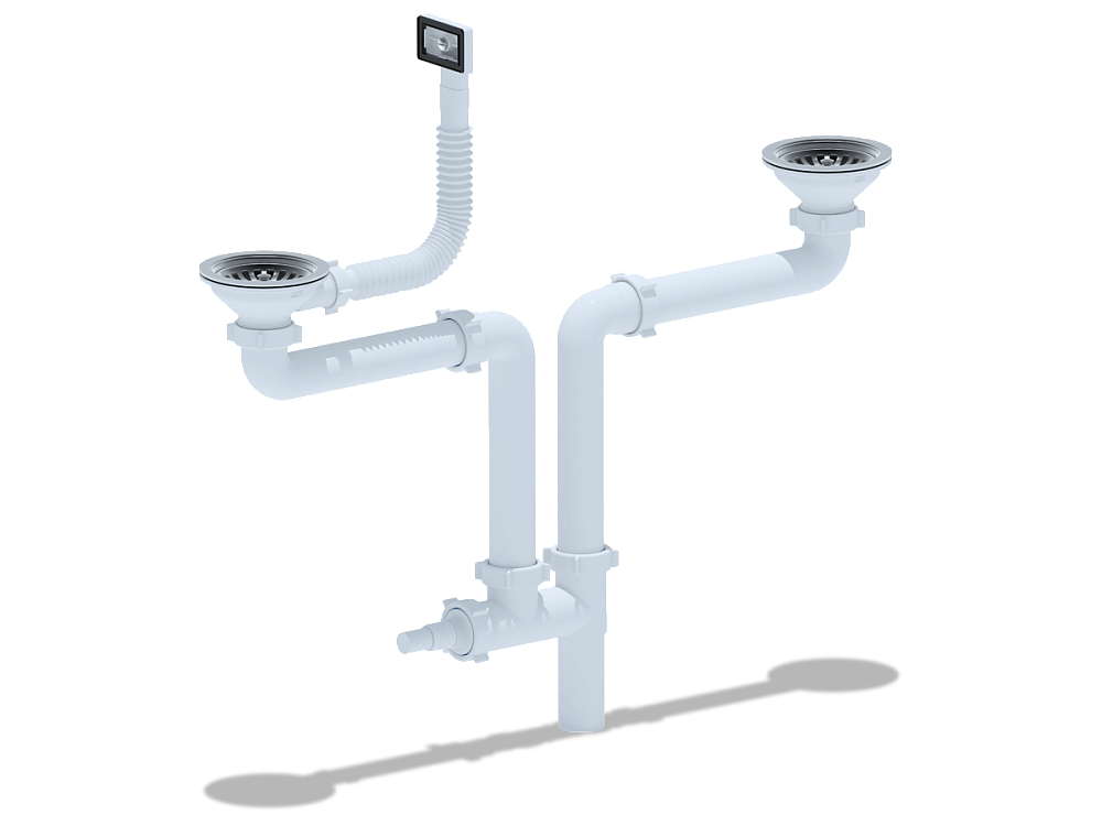 ОписаниеНабор для двойного универсального разноуровневого сифона 3 1/2"х40 с переливом L1015 предназначен для кухонной мойки. Диапазон изменения: 600 мм.