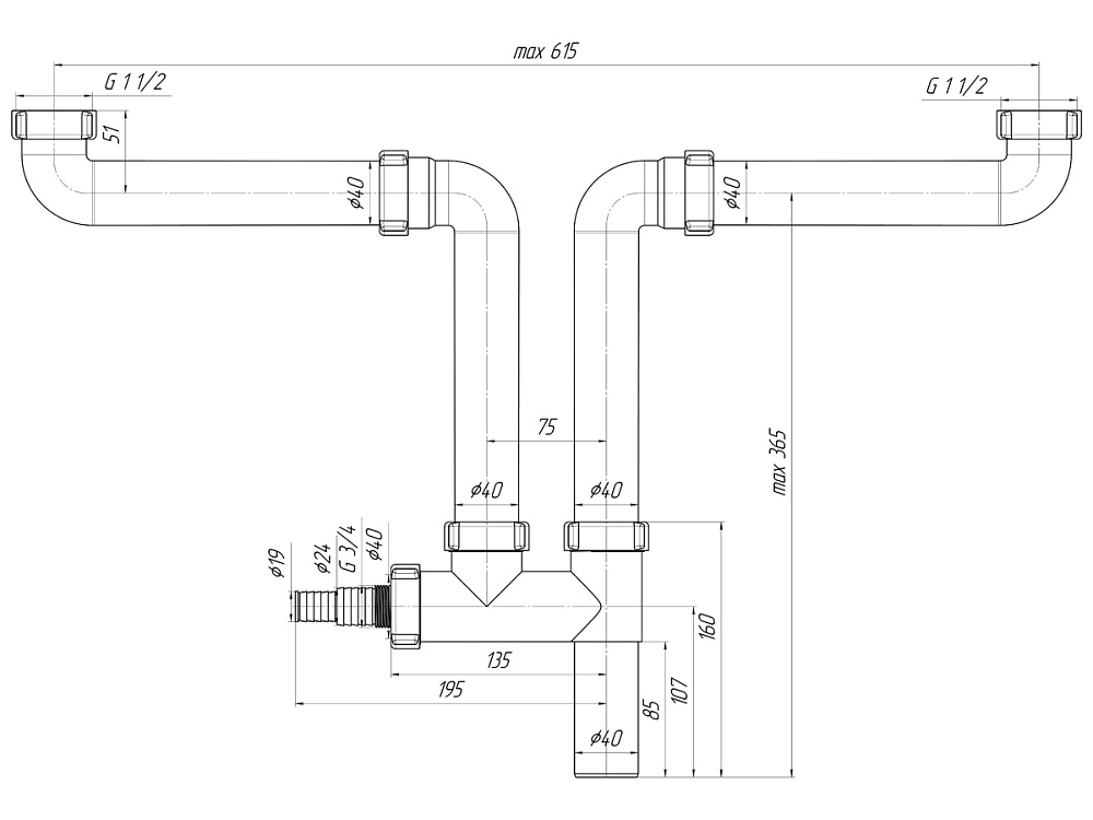 ОписаниеНабор для двойного универсального разноуровневого сифона без выпуска L1000 предназначен для кухонной мойки. Диапазон изменения: 600 мм.