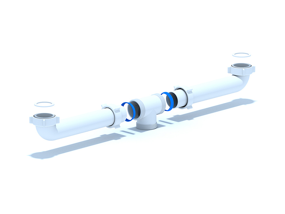 Двойной отвод оптимизирует пространство под мойкой, позволяя подключать две раковины или основную чашу и дополнительное оборудование.